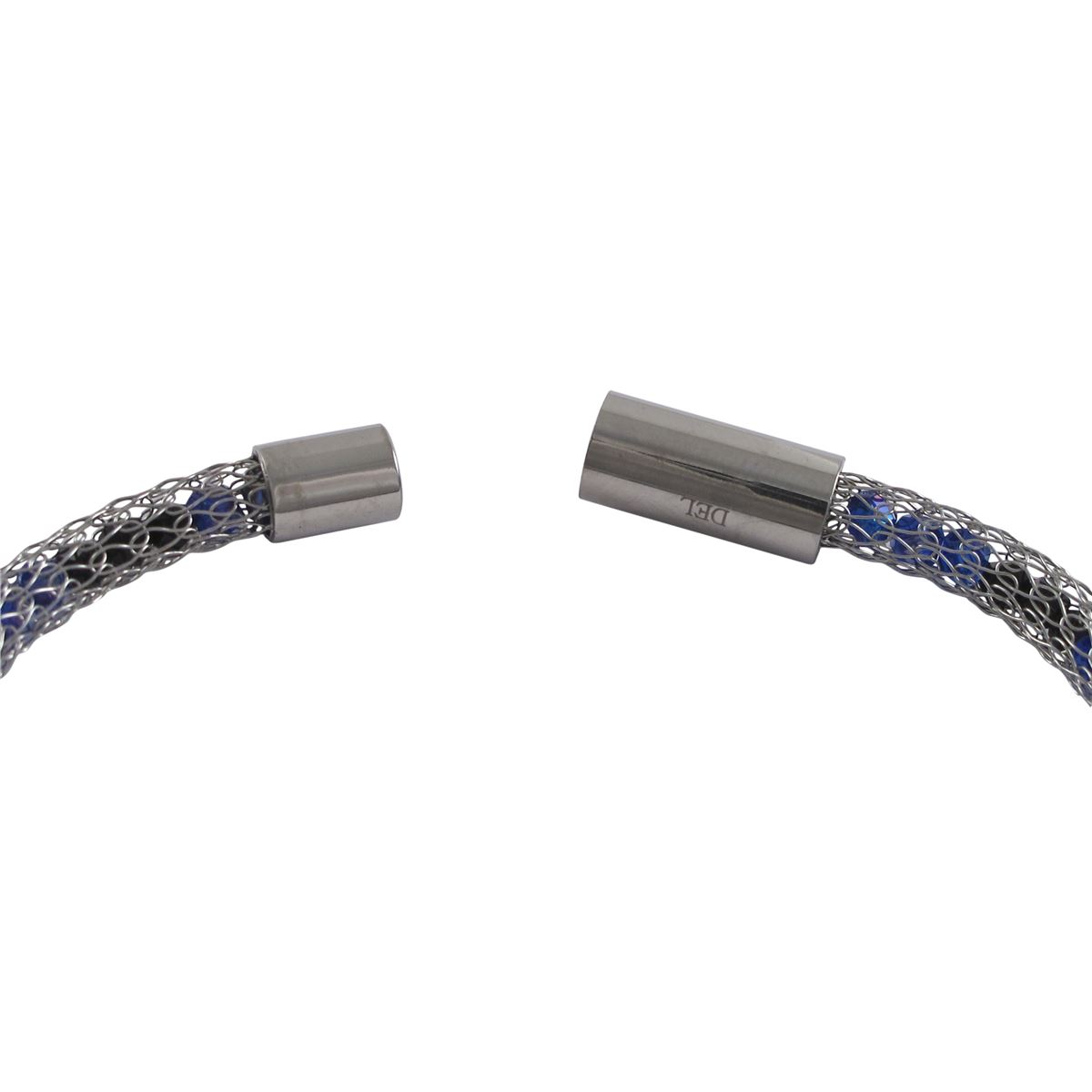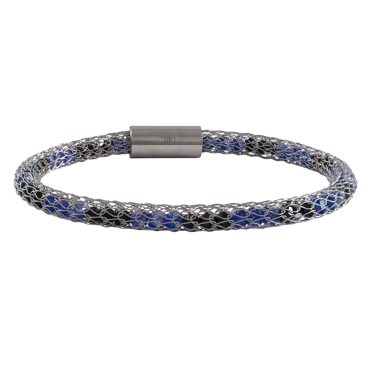 Black & Sapphire Crystal, In Rhodium Over Stainless Steel Mesh Bracelet, 7&Quot;