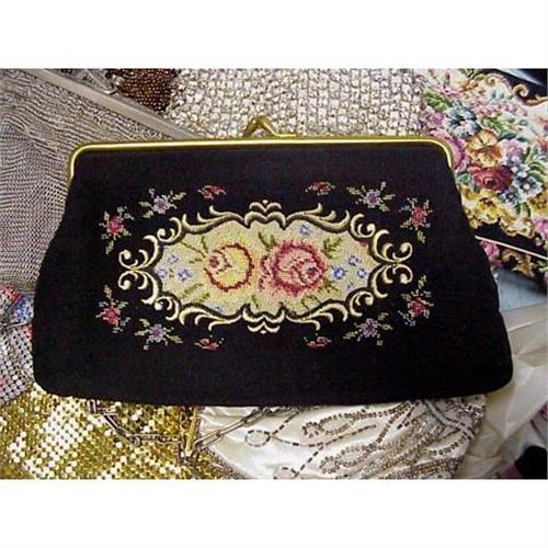 Lovely and colorful needlework antique purse, Made from black silk with the finest petit point needlework, The metal frame has a gold finish.Excellent condition Free of holes or stains - About 7 1/4" x 4 1/4", US Buyer please pay 7.00 for insured shipping.Thank You so much for looking!
