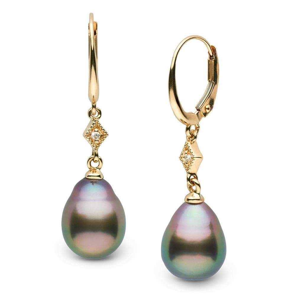 Black Tahitian Drop-Shaped Pearl and Diamond Aerie Collection Dangle Earrings