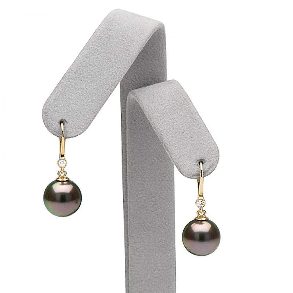 Black Tahitian Pearl and Diamond Bezel Dangle Earrings