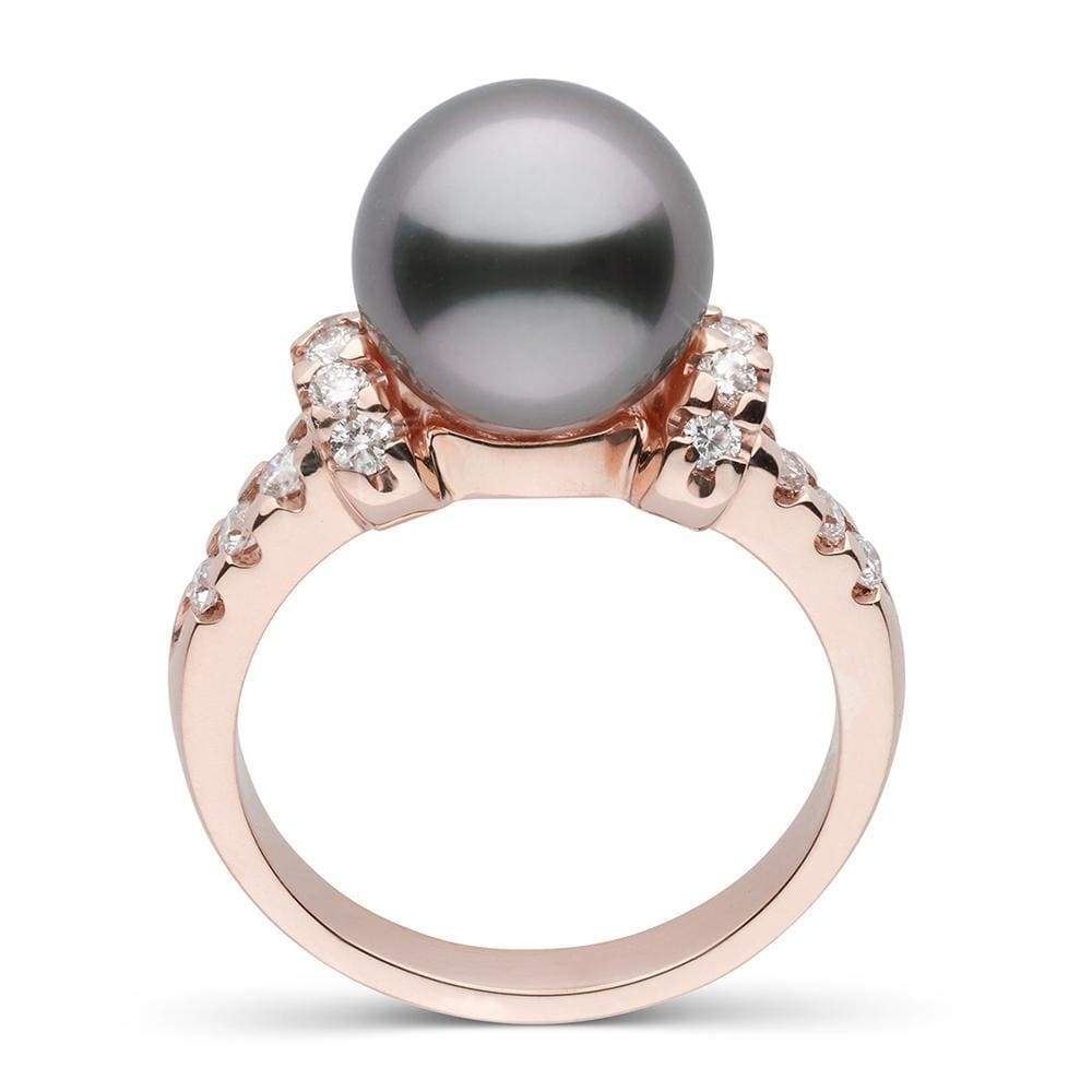 Black Tahitian Pearl and Diamond Bloom Cocktail Ring, 9.0-10.0mm, Sterling Silver or 14K Gold