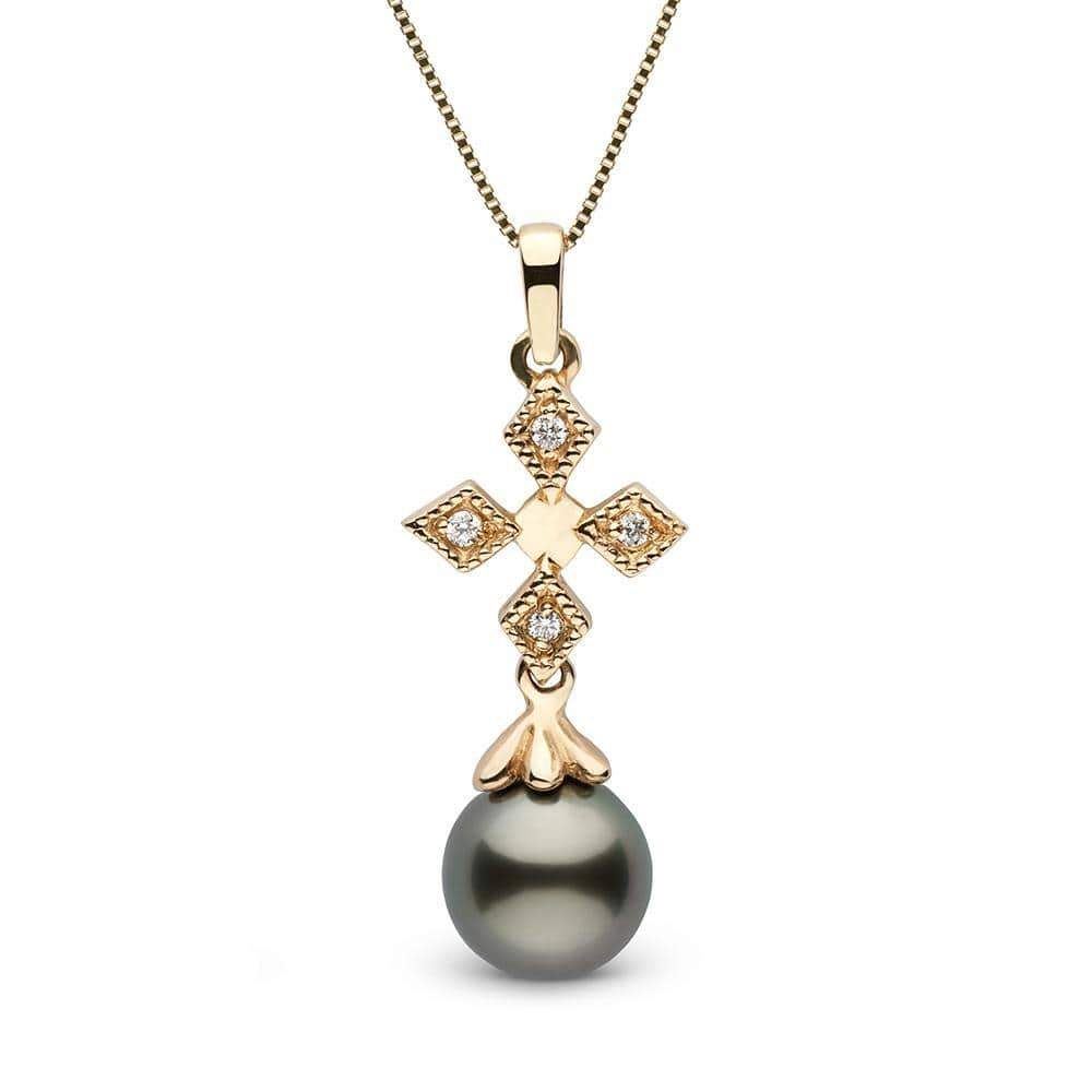 Black Tahitian Pearl and Diamond Cross Pendant