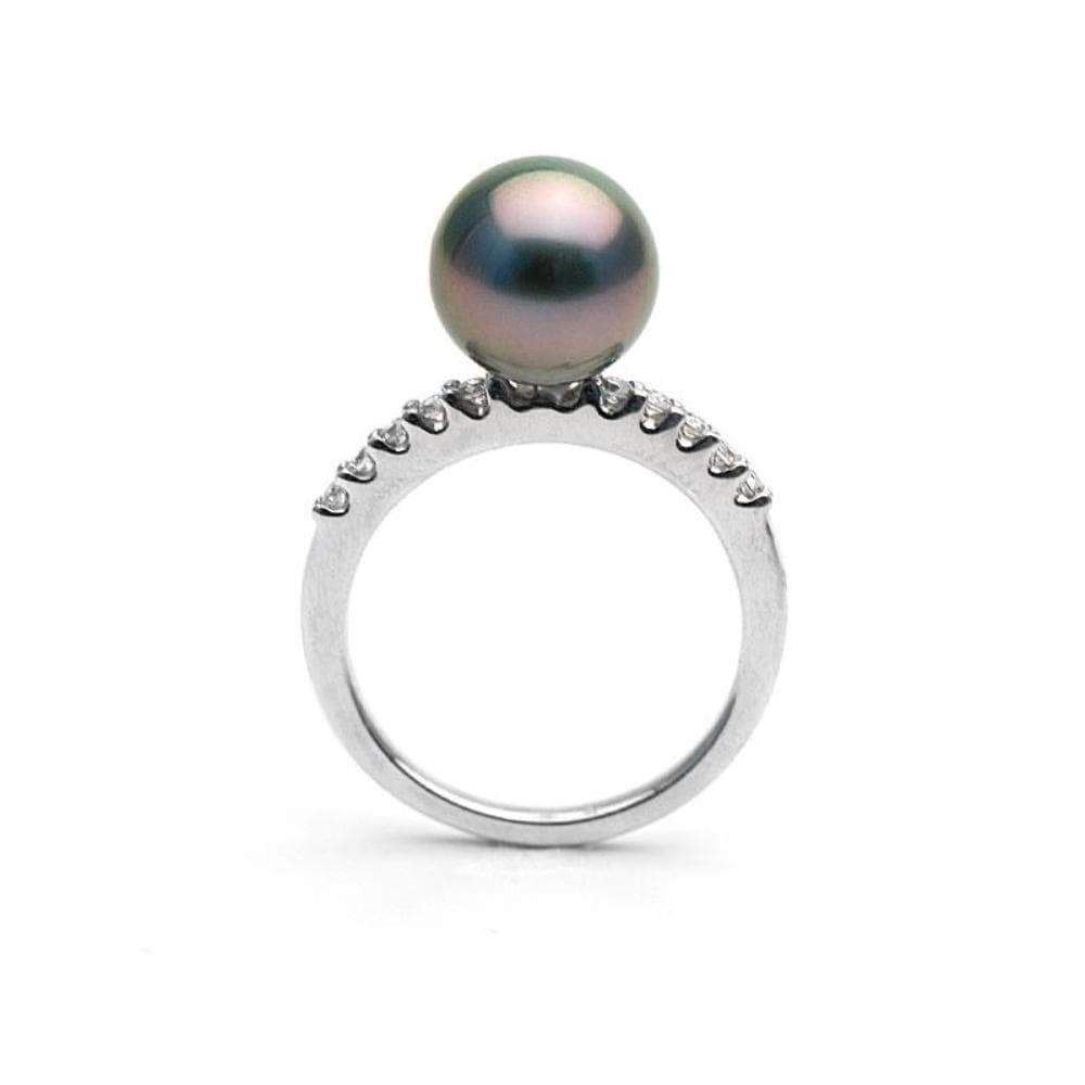 Black Tahitian Pearl and Diamond Half-Eternity Ring, 9.0-10.0mm, 14K Gold