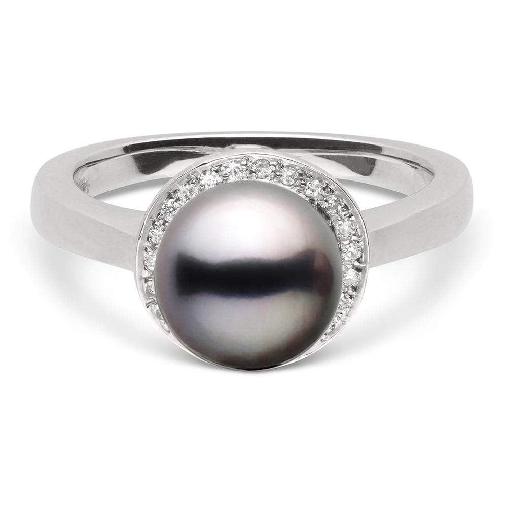 Black Tahitian Pearl and Diamond Halo Ring, 8.0-9.0mm