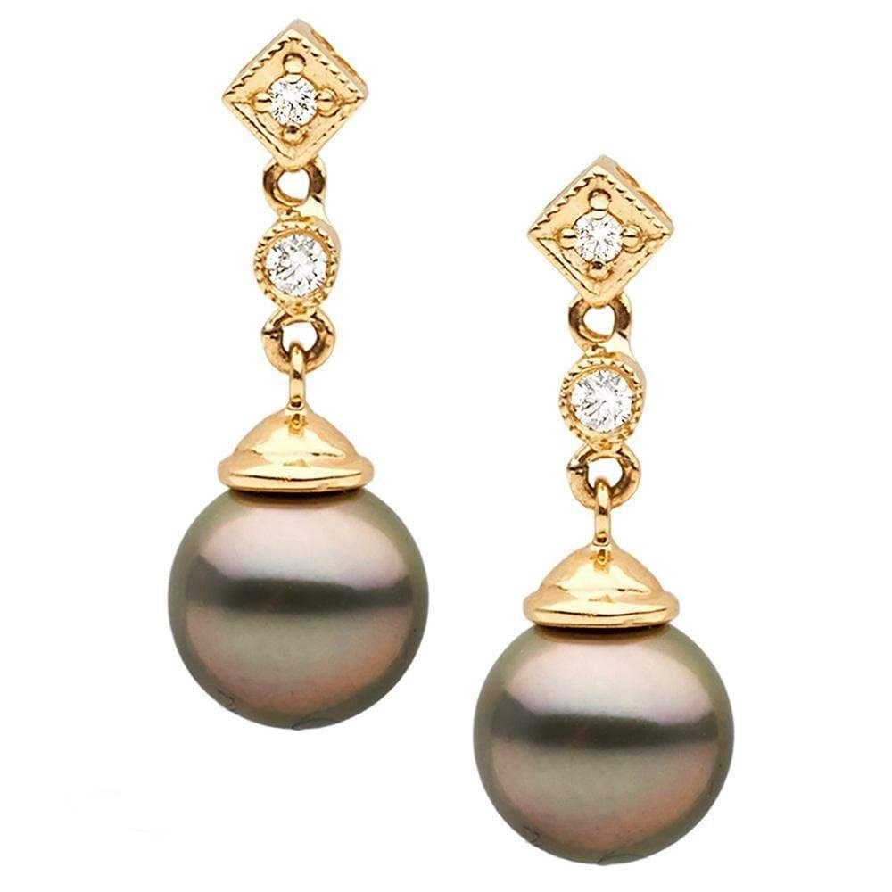Black Tahitian Round Pearl and Diamond Royale Dangle Earrings