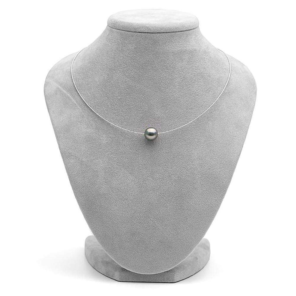 Black Tahitian Round Pearl and Fixed Omega Necklace