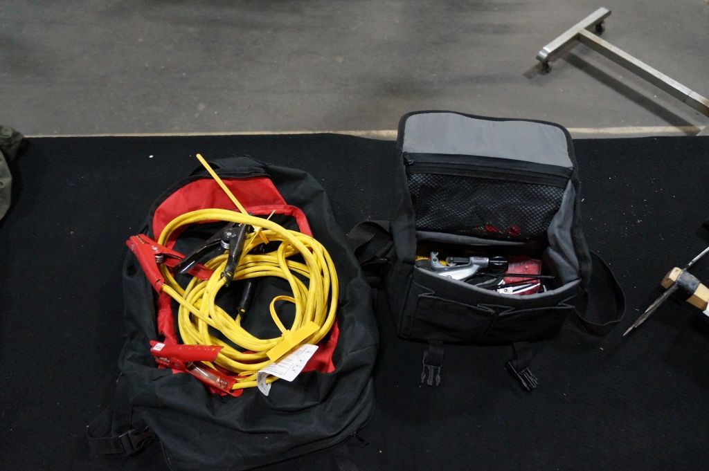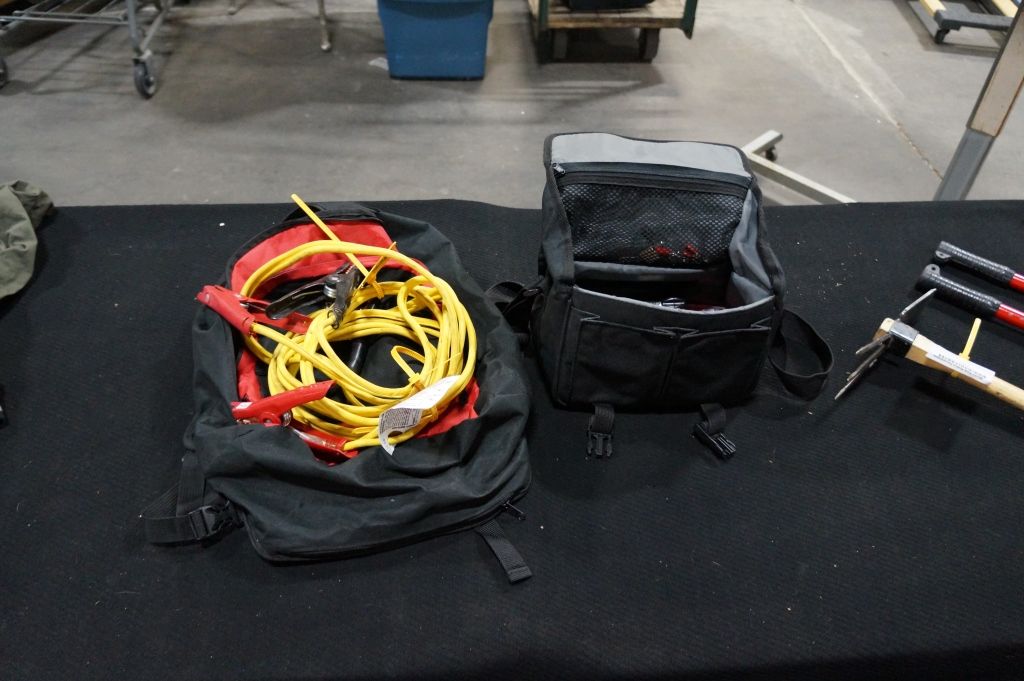 Tool Bag Misc. Small Tools, and Black Backpack set of new Jumper Cables. Police Seized Items.
