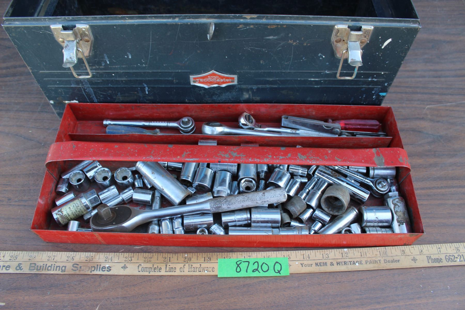 ** Black Toolbox, Assorted Socket Wrenches and Sockets