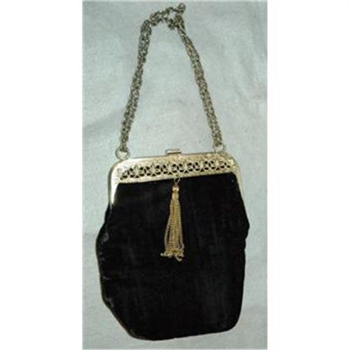 <tr><td>Title:Black Velvet Purse with goldtone frame & tassel</td></tr>