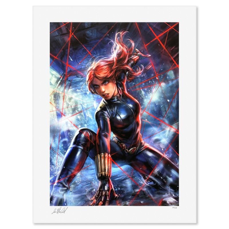 "Black Widow" is a limited edition giclee on paper from Marvel Comics and Ian MacDonald, PP numbered 3/4 and bearing the authorized signature of the artist. Includes Letter of Authenticity. Measures approx. 24" x 18" (border) 20" x 14" (image).
