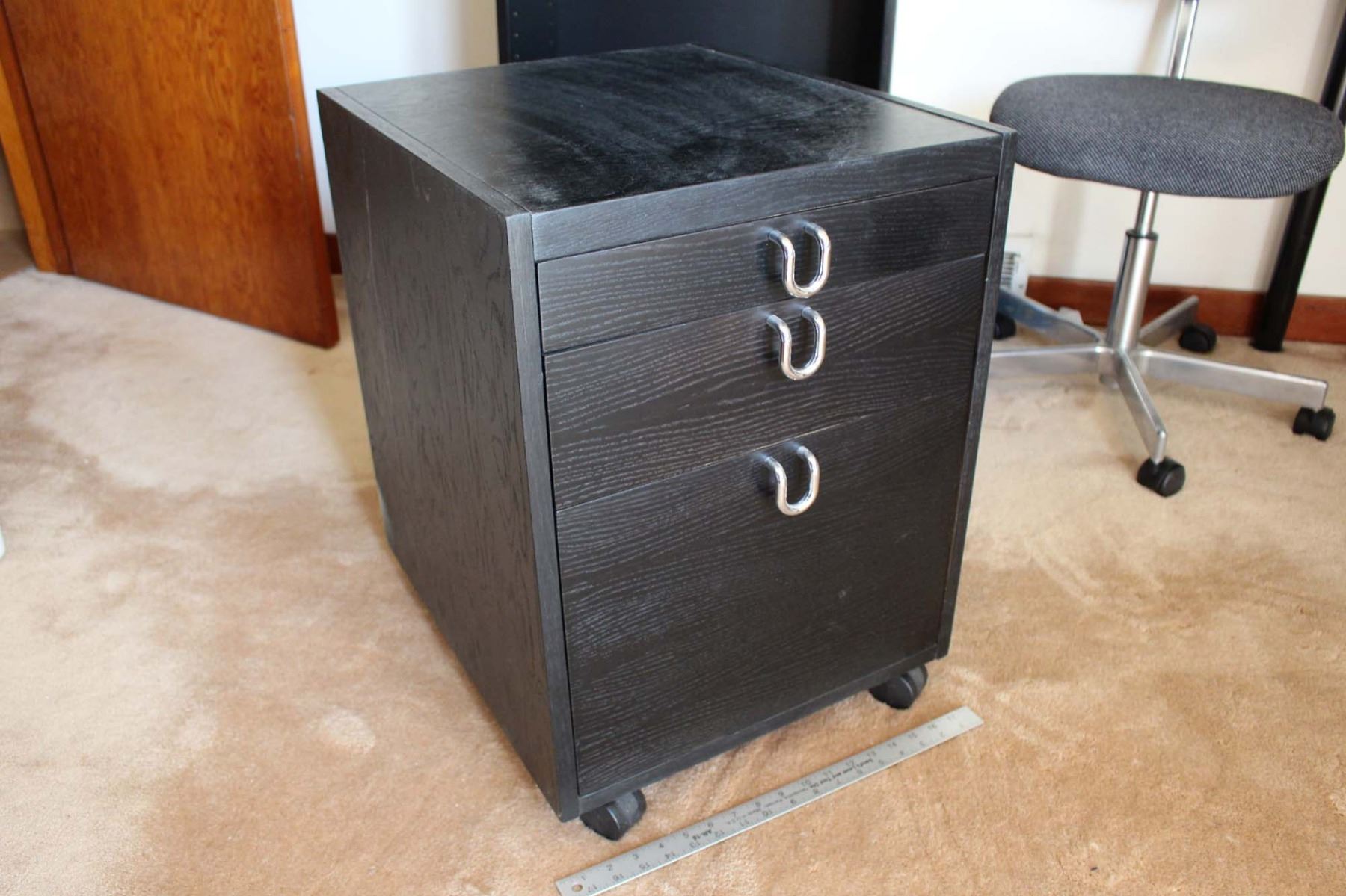 Black Wooden Filing Cabinet on Wheels (20” x 18” x 23”)
