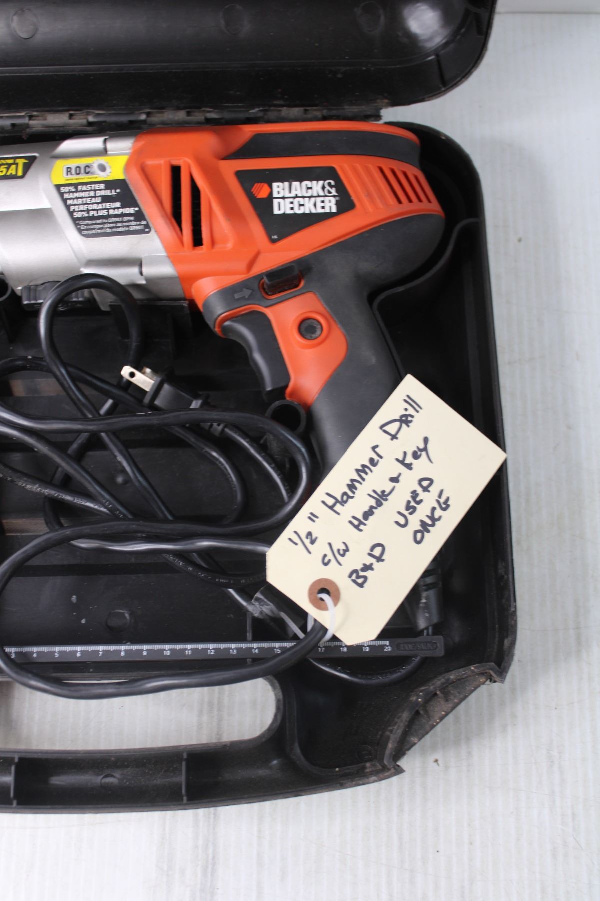 Black and Decker 1/2" Hammer Drill with Handle and Key (Working)