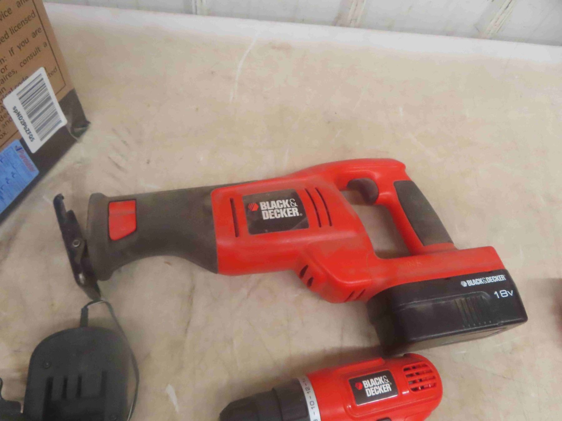 Black and Decker 18V Reciprocating Saw , Drill, Flashlight &