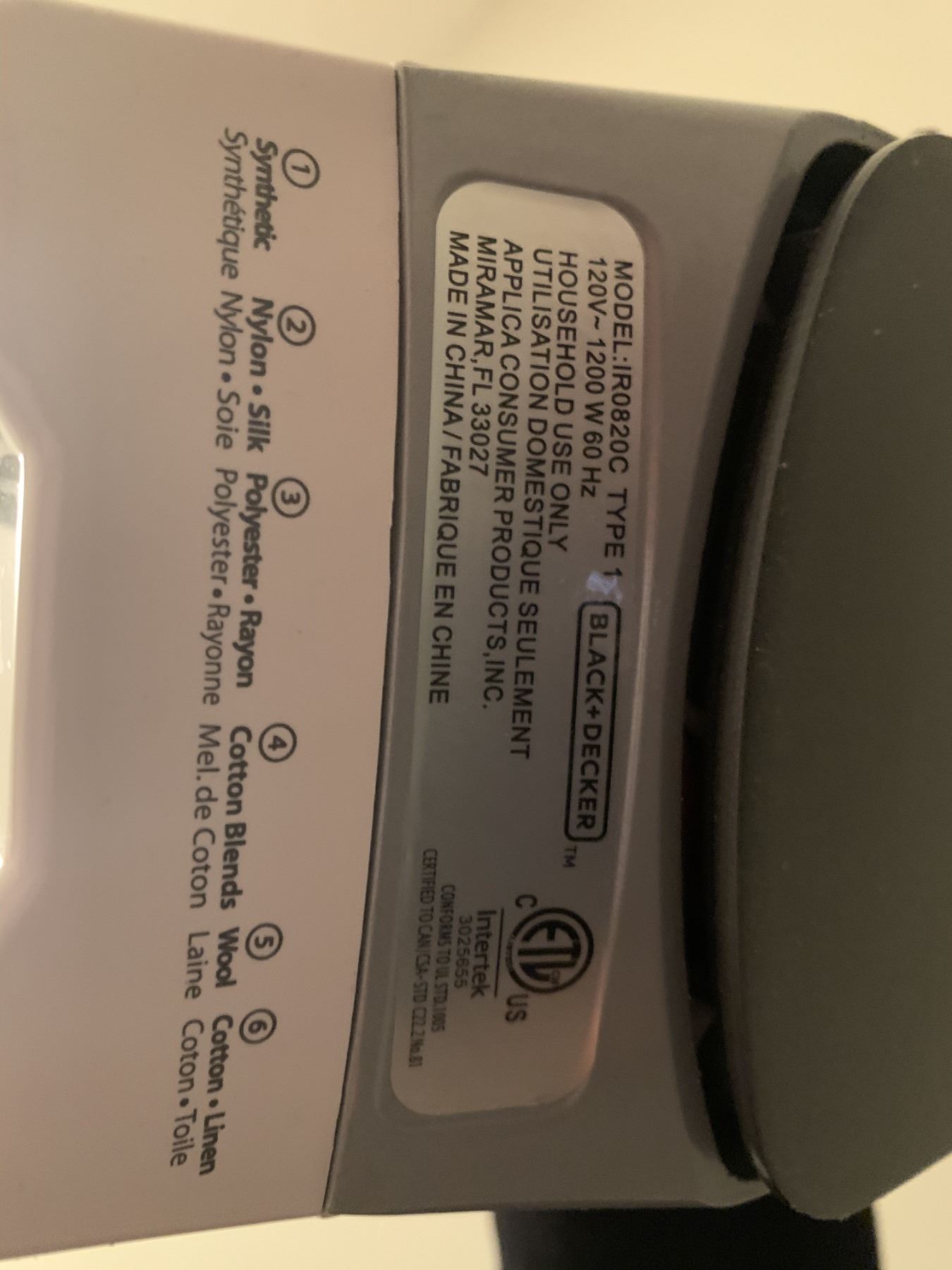 Black and Decker Clothing Iron (Model IR0820C) and Ironing Board