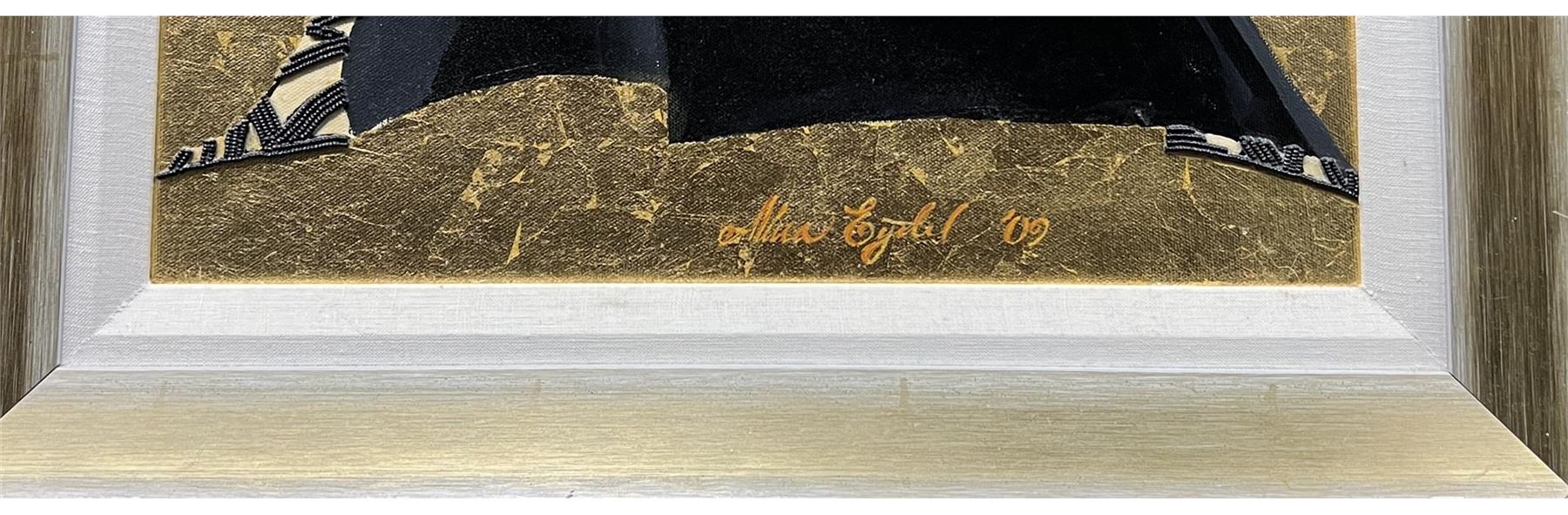 Black and Gold Glamour II by Eydel, Alina. Original One-of-a-Kind Hand Signed Acrylic on Canvas Framed. Frame has some marks. Dimensions: 35.5 x 17.5. Artwork Excellent, Frame Good.