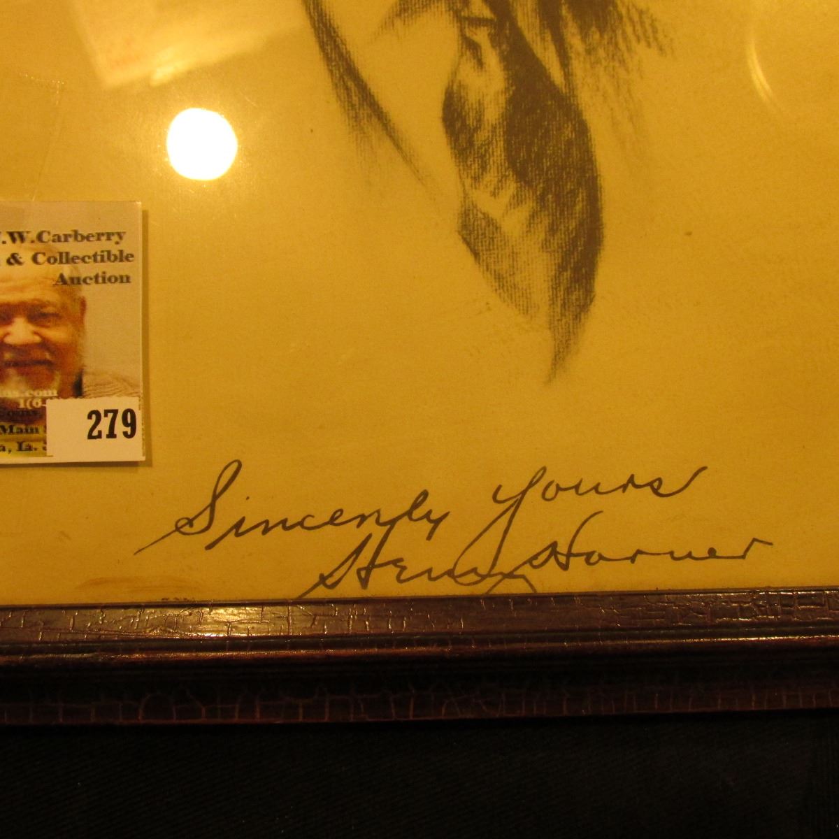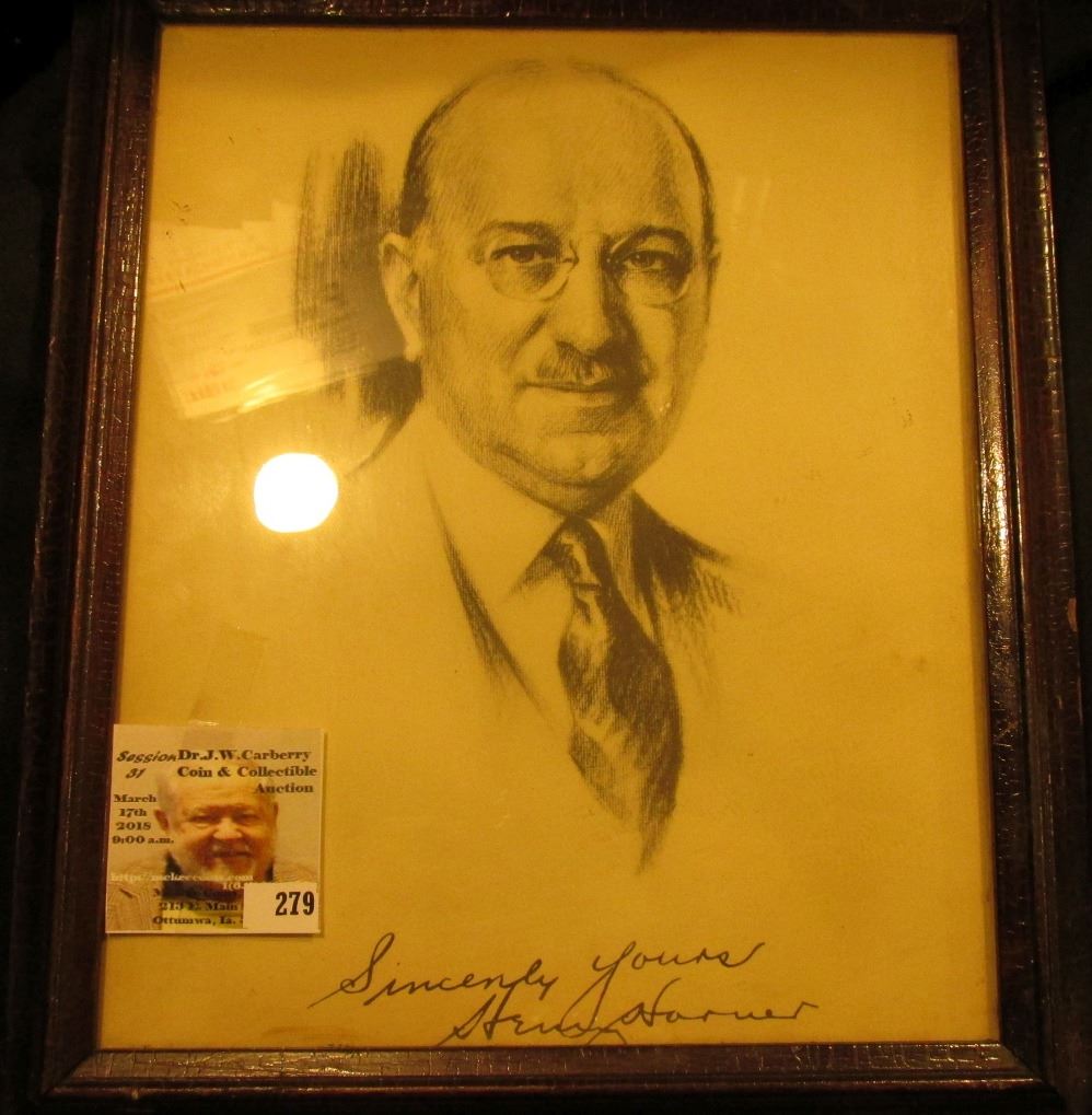 Black and White Sketch of 1932 Illinois Governor, Henry Horner, autographed by same "Sincerely Yours Henry Horner", 9" x 11", glass framed.