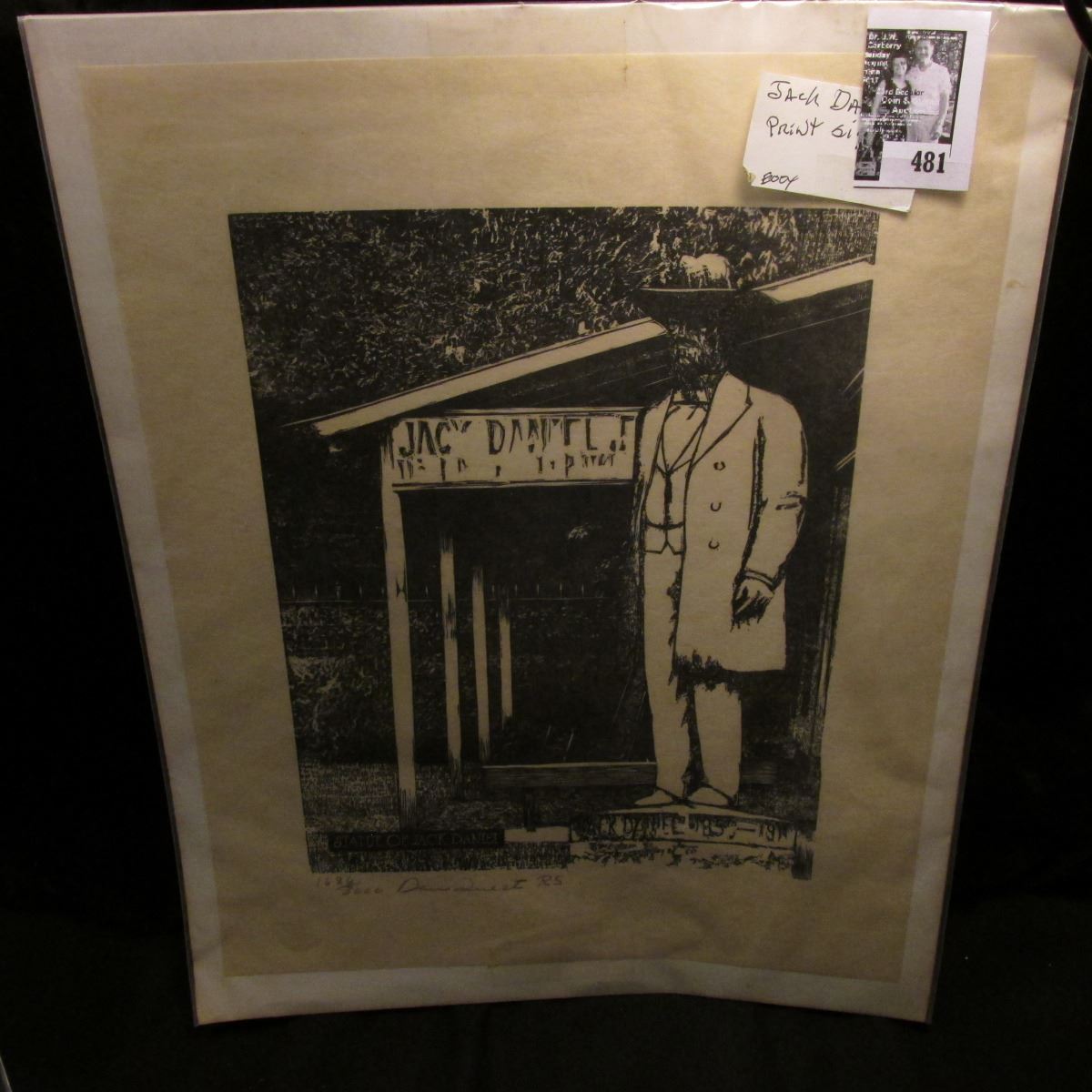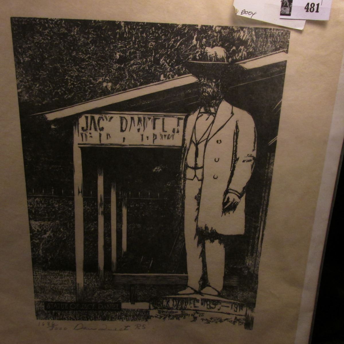 Black and white Print of Statue of Jack Daniel, signed by artist "1686/3000 Dan Quest RS".