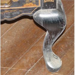 Black ebonized Oriental ladies' drop-front writing desk. Stands 39 1/2" tall, 24" wide, and 15 1/4" deep. Made by Maddox. Has four drawers and pad feet.