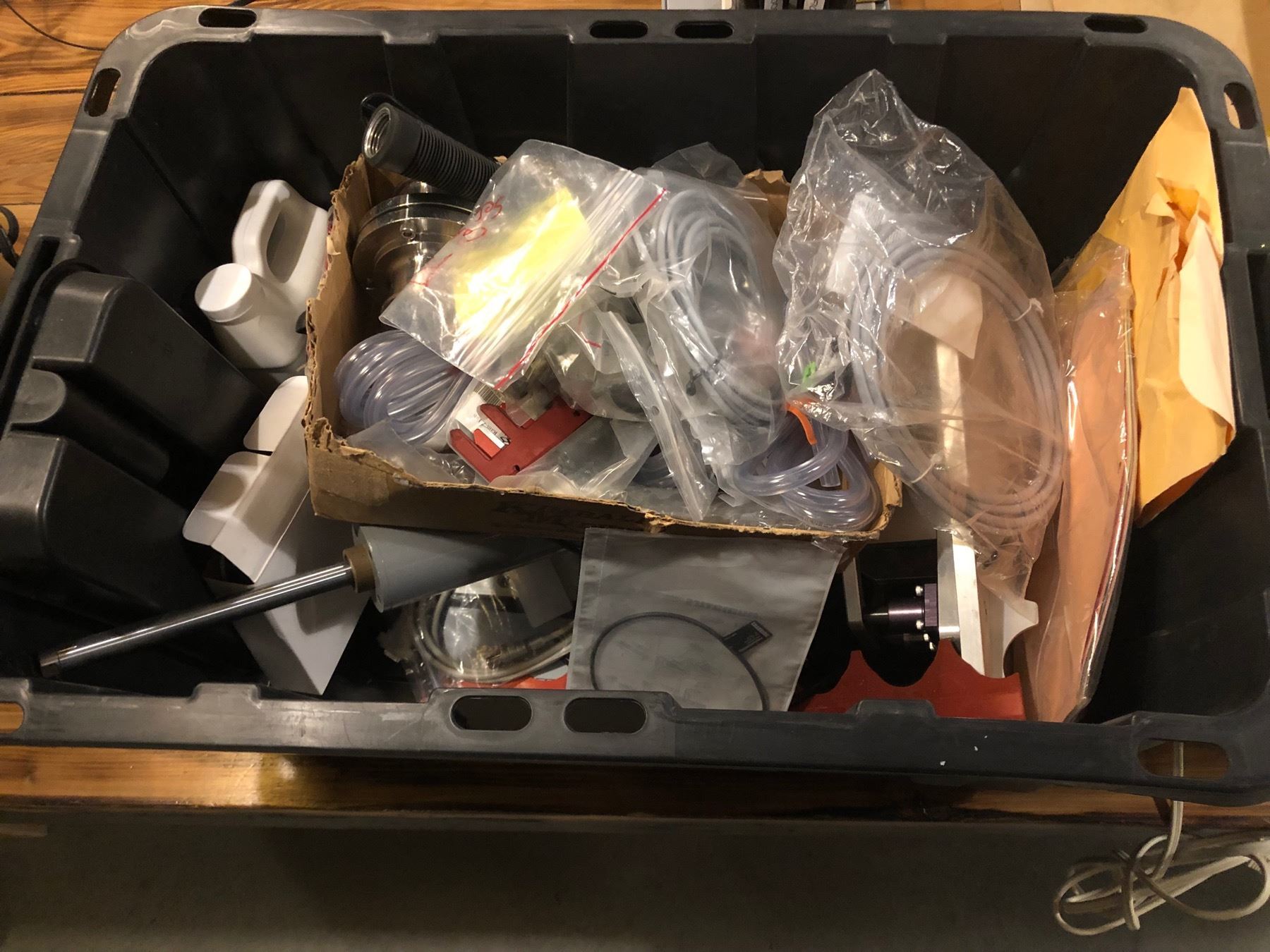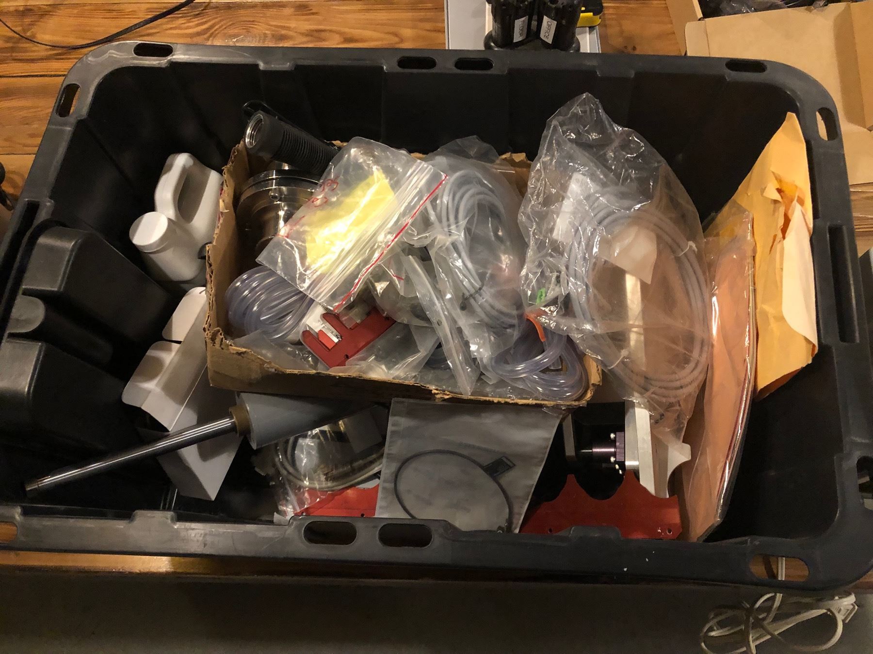 Black tote filled w/ misc. Items - includes small hoses etc.