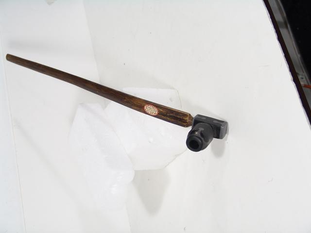 Early 1900s, Inlaid black stone bowl and carved wooden stem, both showing good use - Browning, Montana. 4" x 22"