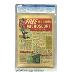 Blackhawk #11 (Quality, 1946) CGC VF/NM 9.0 Off-white pages. No, the checkerboard motif on this Al Bryant cover wasn't sponsored by the good folks at Purina, but you've got to admit, it certainly attracts your attention like a bull's-eye! Master Blackhawk artist Reed Crandall contributes interior art. Only four copies of issue #11 have graded higher according to CGC's latest census. Overstreet 2003 VF/NM 9.0 value = $735; NM 9.4 value = $950. Important notice: Heritage usually auctions material at the rate of 200-250 lots per hour. On some occasions eBay Live bid software or the Internet may not be able to keep up with the pace of the auction. We recommend placing a realistic absentee bid now as insurance to avoid disappointment. Occasionally the auctioneer may eliminate or reject an eBay Live bid, and the auctioneer may also reopen a lot after the close of the eBay live bidding (usually because we missed an audience bid), and may reject your bid even if it shows you as the winning bidder. By bidding via eBay Live, you agree that Heritage may award the lot to another bidder at its sole discretion under the circumstances described above or any other reasonable circumstances. Since eBay bids are not shown to us until we open the lot on the floor, we treat those bids just like floor bids. In most cases the floor responds before the eBay bid is presented to us, due to Internet lag time, so for consistency we have made it a policy that floor bids are always considered first over tie eBay live bids. Also please note that all Heritage lots purchased through eBay Live carry a 20% Buyer's Premium. Please make sure you read the Terms and Conditions before you bid.