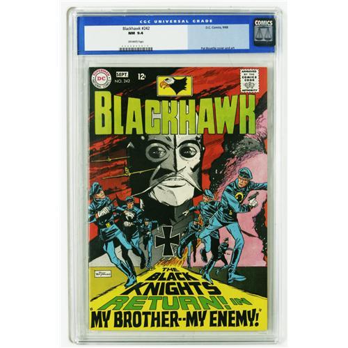 <B>Blackhawk #242 (DC, 1968) CGC NM 9.4 Off-white pages.</B></I> Pat Boyette cover and art. Overstreet 2006 NM- 9.2 value = $32. CGC census 4/06: 2 in 9.4, none higher.
