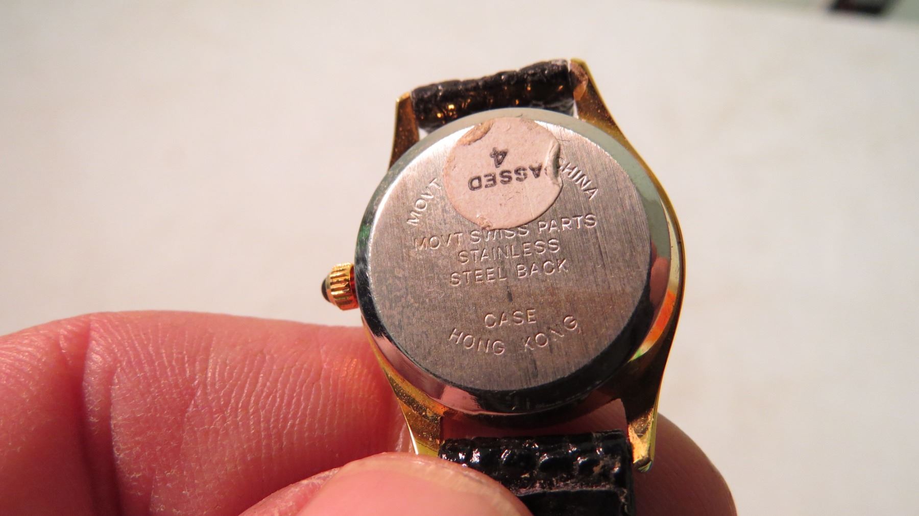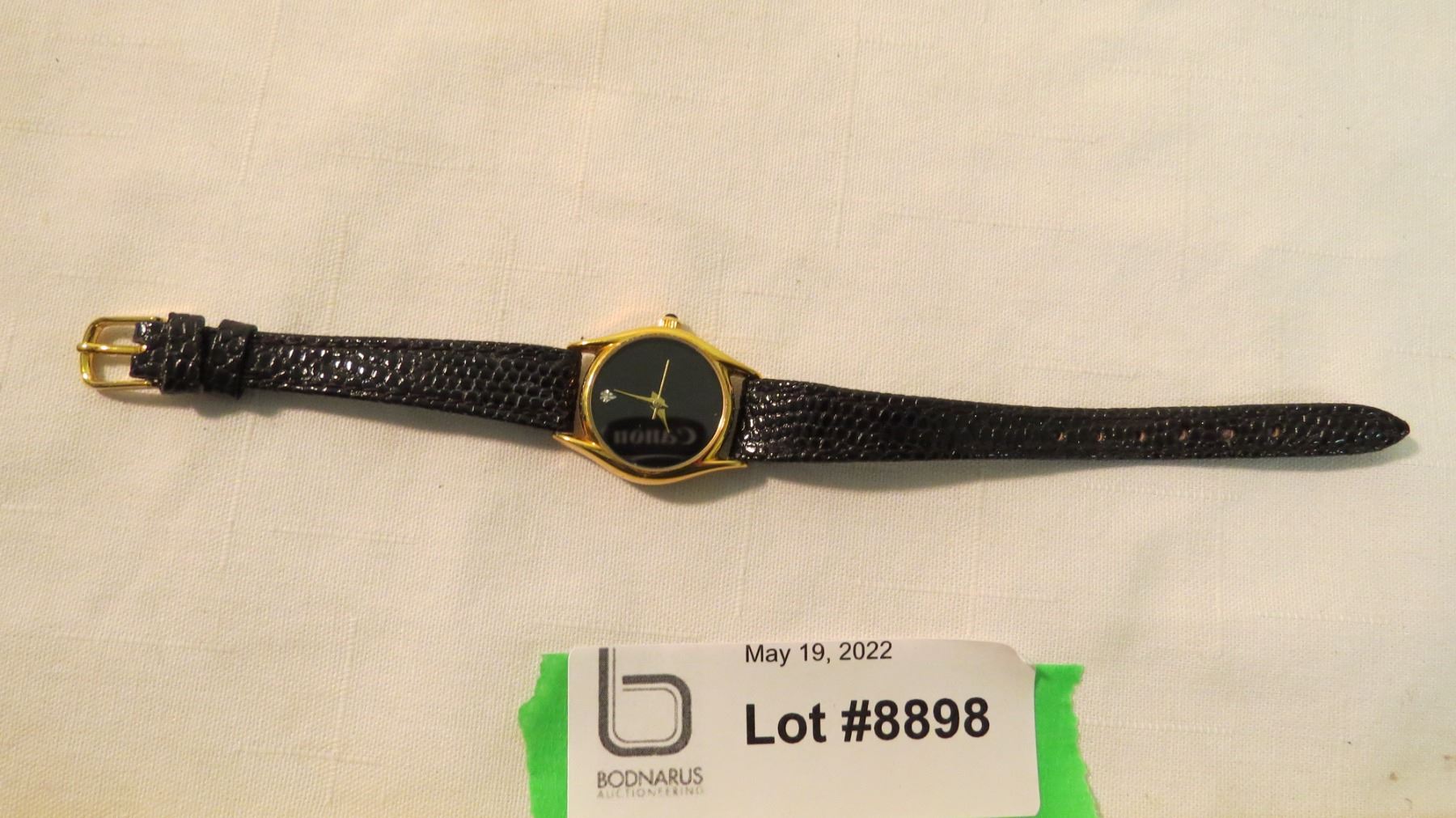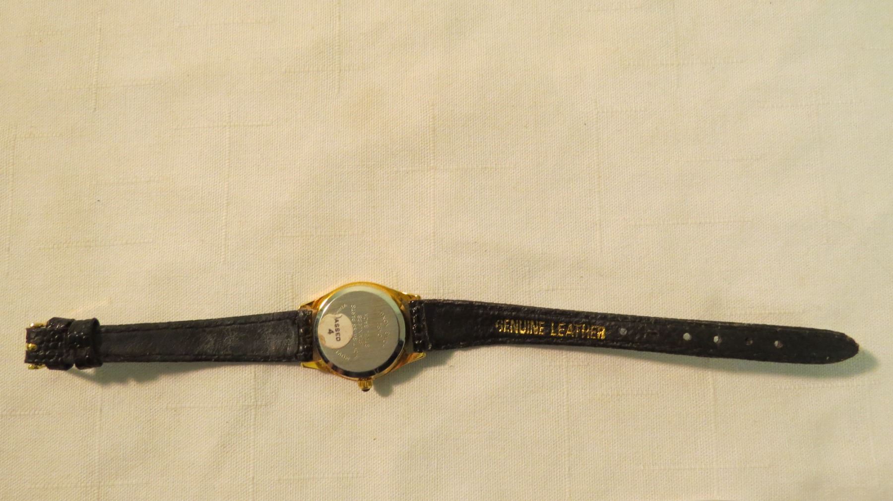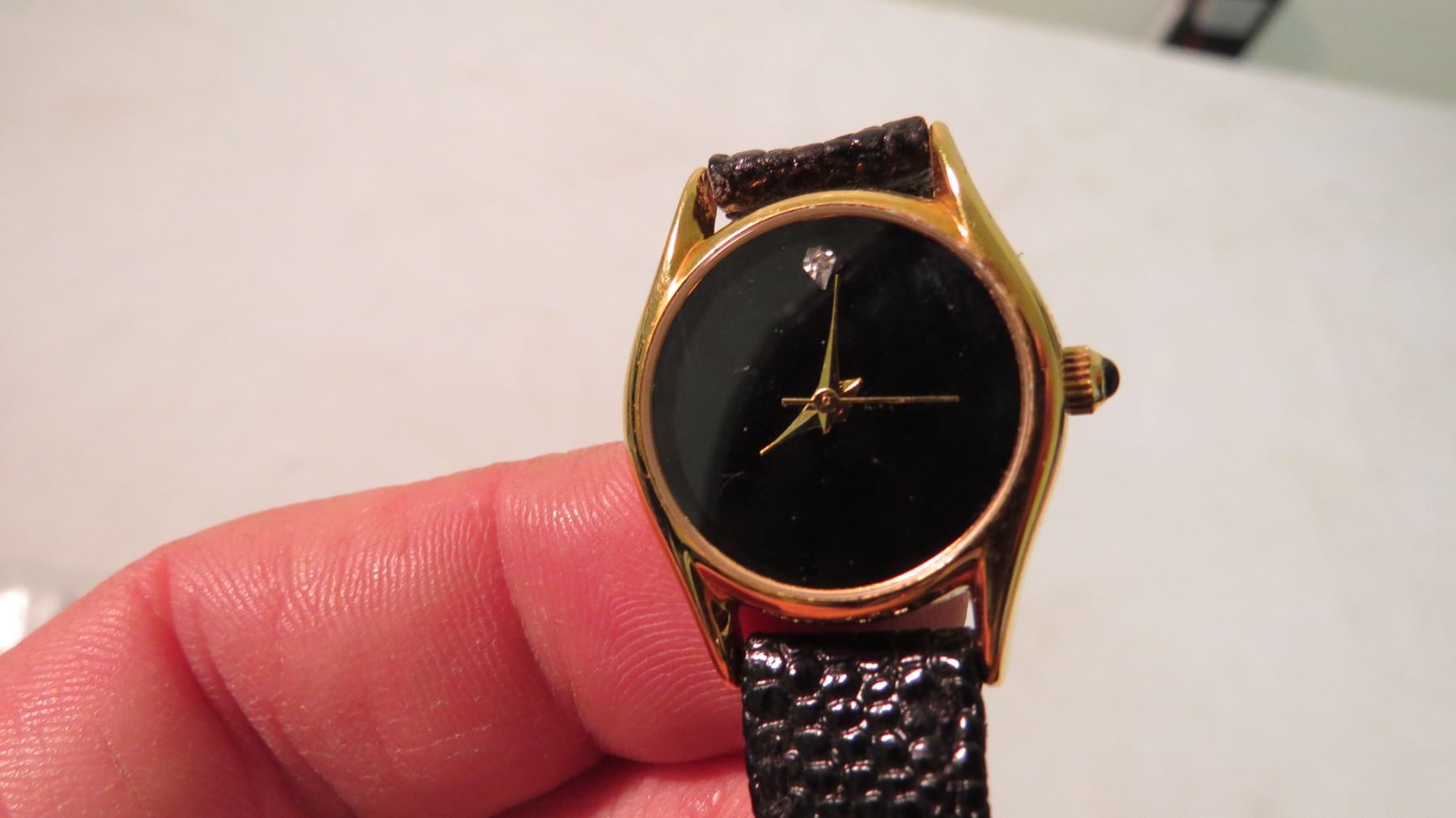 Blackout watch with gem at 12 and leather band