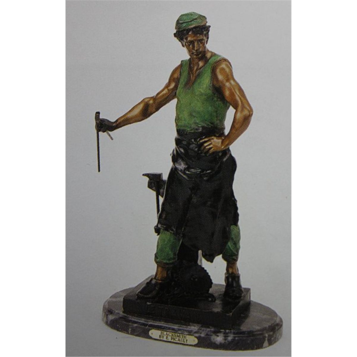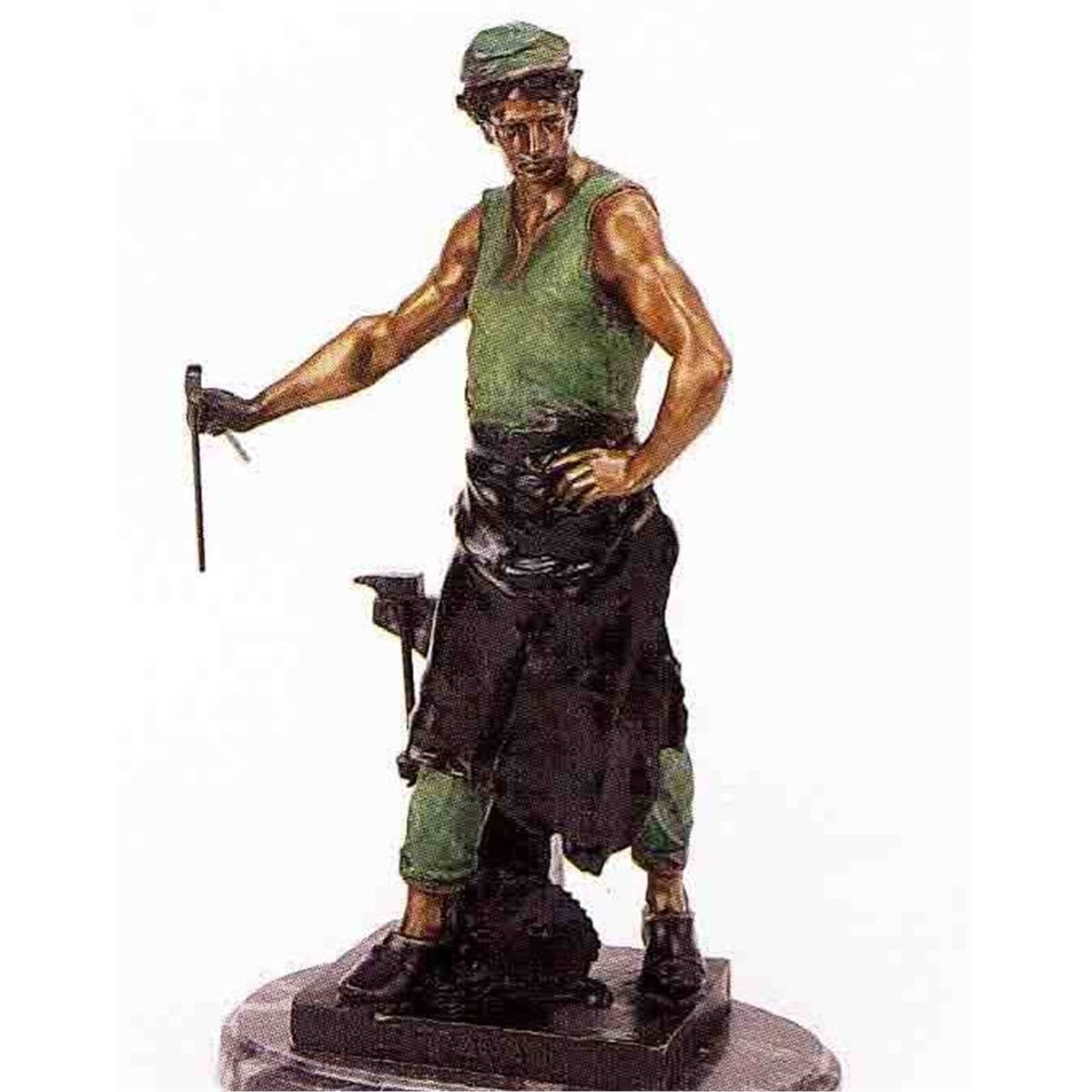 "Blacksmith" Bronze Sculpture - After Picault - Beautiful Color Patina/Museum Brown Finish - Mounted On A Fine Italian Marble Base - Beautifully Detailed - Signed - Mint Condition - 24"H X 12"W - Lost Wax Cast Bronze