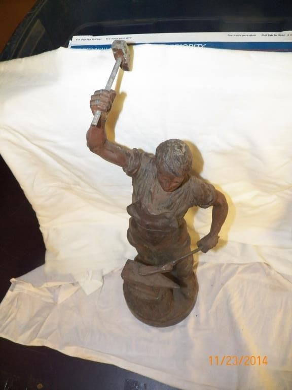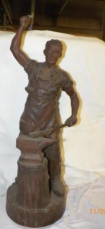 Large 21 1/2" tall Blacksmith possibly was a Lamp at one time?