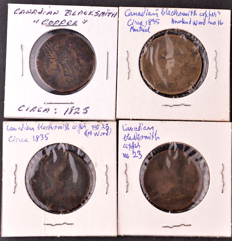 Blacksmith Token, Wo-12, BL-8, Good Fine; Wo-29, BL-47A2, thin flan, 6.78 gms, Fine, or better, details, but holed and pluged; Token of Esteem, (2); Total 4 pcs.