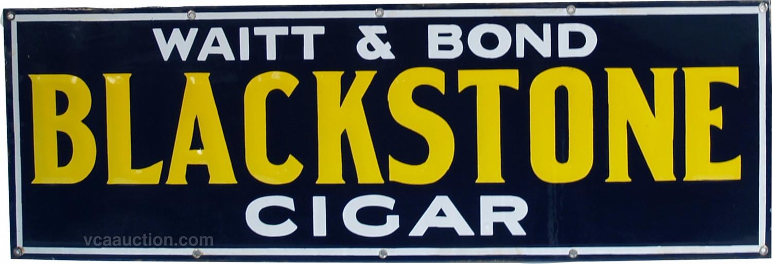 Blackstone Cigar Embossed Porcelain Sign "Wait & Bond" in great condition - 36" x 12"