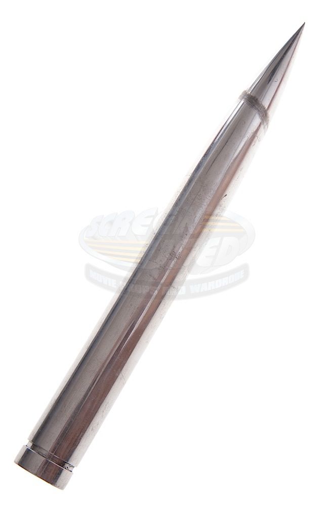 (New Line Cinema, 1998) This prop vampire killing spike was custom-made by the production for use by Wesley Snipes as "Blade". The spike is made of solid aluminum and has minor wear from use. Measures 9.5" in length.