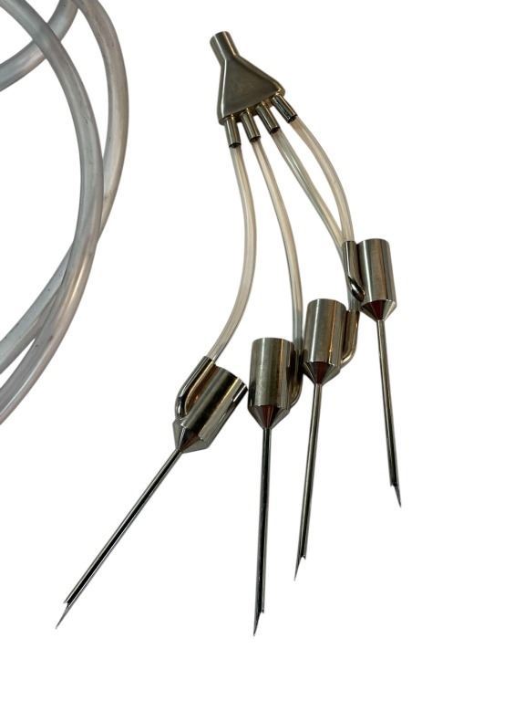 A set of finger mounted blood extracting needles used in the production of the Guillermo del Toro directed superhero film 'Blade II' (2002), where Blade forms an uneasy alliance with the vampire council in order to combat the Reapers, who are feeding on vampires.