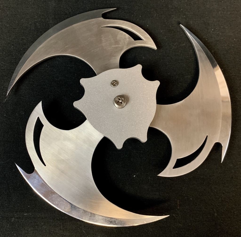 Original prop cyclone made for 'Blade', played by Wesley Snipes in the production of Blade II (2002), the superhero movie where, Blade forms an uneasy alliance with the vampire council in order to combat the Reapers, who are feeding on vampires. Blade II was released on March 22, 2002 and was a box office success, grossing over $155 million. It also received mostly positive reviews from critics, earning praise for its performances, atmosphere, direction, and action sequences.