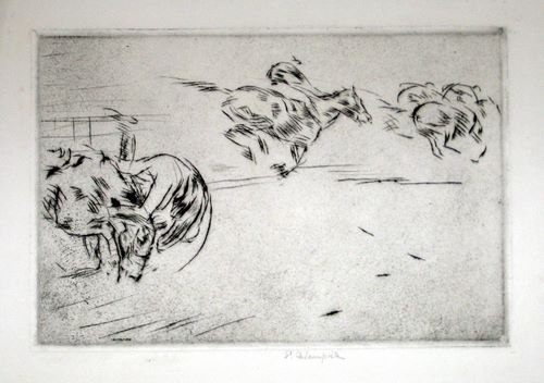 Blampied Pencil-Signed "The Tumble" Etching And Drypoint - Original Etching And Drypoint. Signed In Pencil. Catalogue Reference D 61. This Blampied Drypoint Was Executed In 1921 And Beautifully Printed On Cream Wove Pape. Size: 7 3/4 X 11 5/8 Inches - Professionally Framed & Matted - Comes With Certificate - -