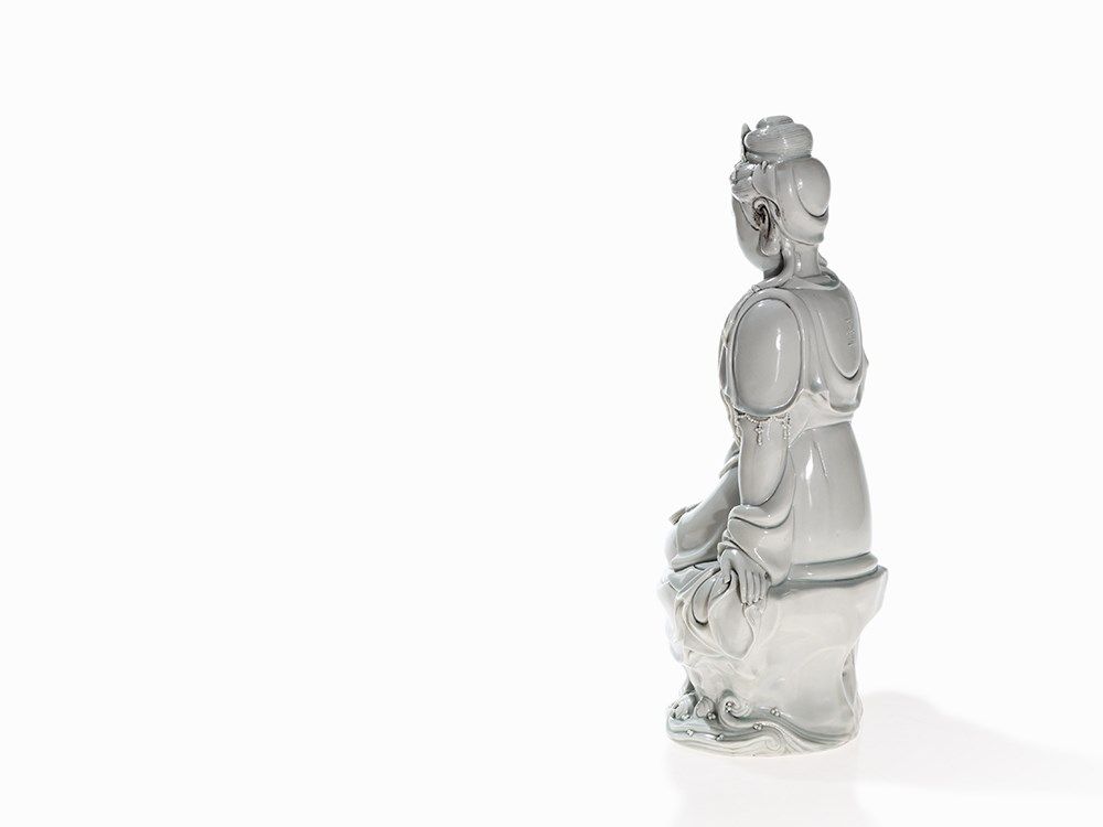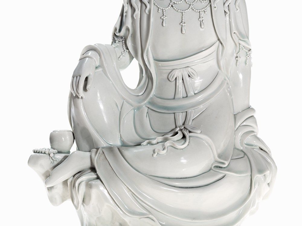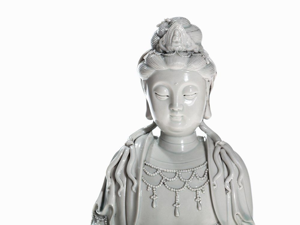Condition: The Guanyin figure is in very good condition with hardly any signs of age. One finger of the right hand is minimally chipped. It measures 36 cm in height.