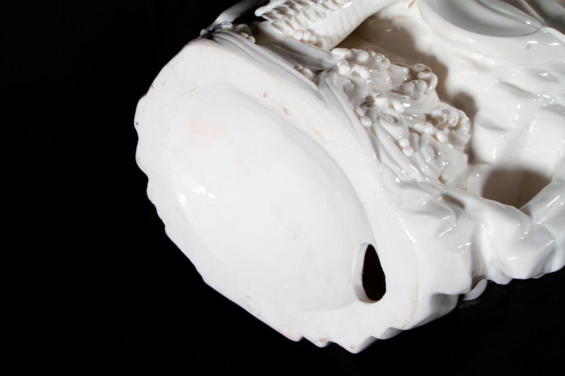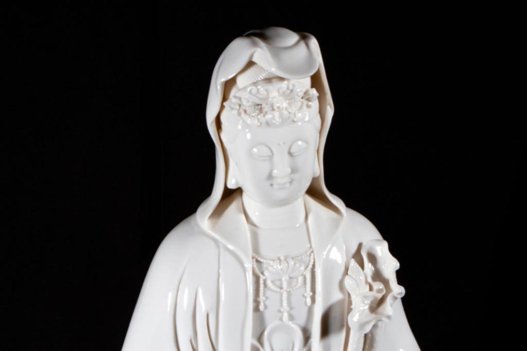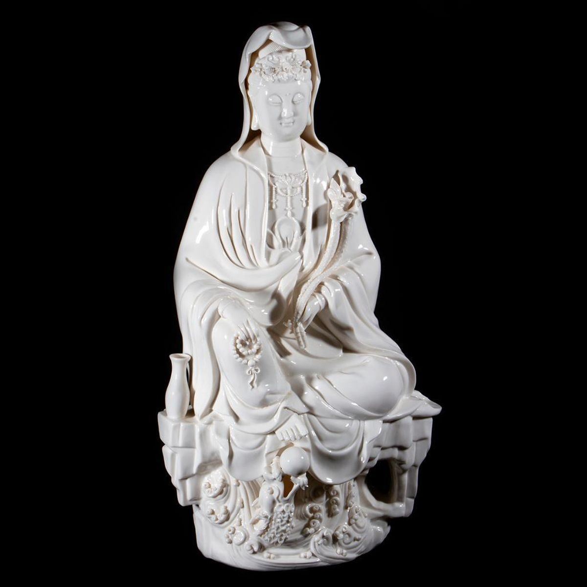 A large Chinese Blanc de Chine porcelain seated Quan Yin. H - 24: W - 13" D - 7". Condition: Good.