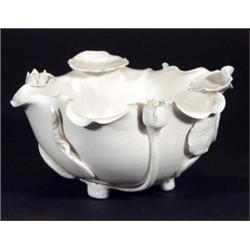 Blanc de Chine water lily shaped planter, relief moulded with flowers and lilies, 22cm diameter