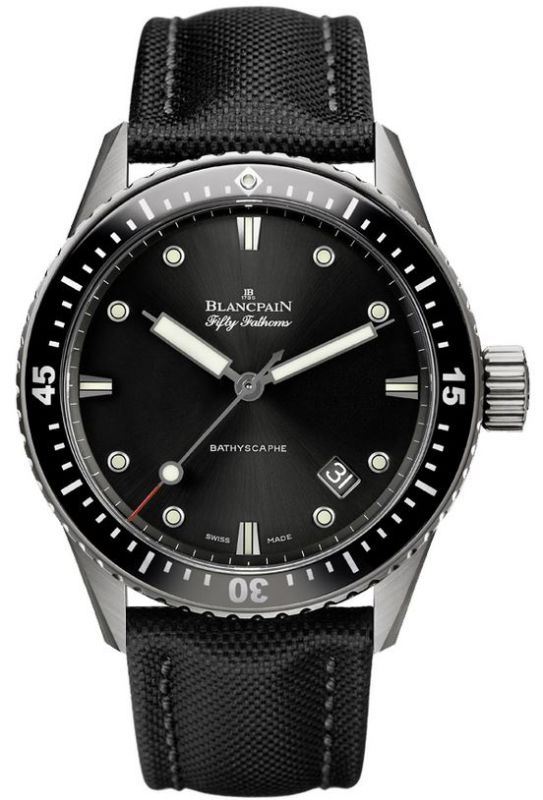 Model: 5000-1230-B52A - CASE = [Material:Titanium], [Case Diameter:43], [Case Thickness:13.40mm], [Bezel:Uni-Directional Rotating], [Case Back:Skeleton], [Water Resistant:300 Meters - 1000 Feet], [Crystal:Scratch Resistant Sapphire], DIAL = [Color:Black], MOVEMENT = [Type:Automatic Self Winding], [Crown:Screw Down], BAND = [Clasp:Tang], [Type:Black Fabric], (Usually ships in 1 to 2 weeks.)
