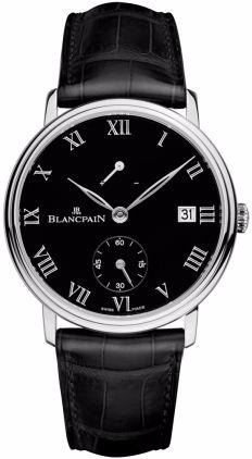 Model: 6614-3437-55B - CASE = [Material:Platinum], [Case Diameter:42], [Case Thickness:10.55mm], [Case Back:See-thru Sapphire Crystal], [Water Resistant:30 Meters/100 Feet], [Crystal:Scratch Resistant Sapphire],; DIAL = [Color:Black Grand Feu Enamel],; MOVEMENT = [Type:Manual Winding],; BAND = [Clasp:Deployment], [Type:Black Crocodile Leather], (In Stock - Ready to ship.)