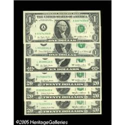 <B>Blank Backs on FRNs,</B></I> including $1 1969D L <B>AU,</B></I> tear; $1 1977 A <B>CU,</B></I> $10 1977 L <B>AU,</B></I> $20 1977 B <B>CU,</B></I> $20 1985 E <B>AU,</B></I> and $20 1985 G <B>AU,</B></I> ink.<BR> 6 notes Lot:15087