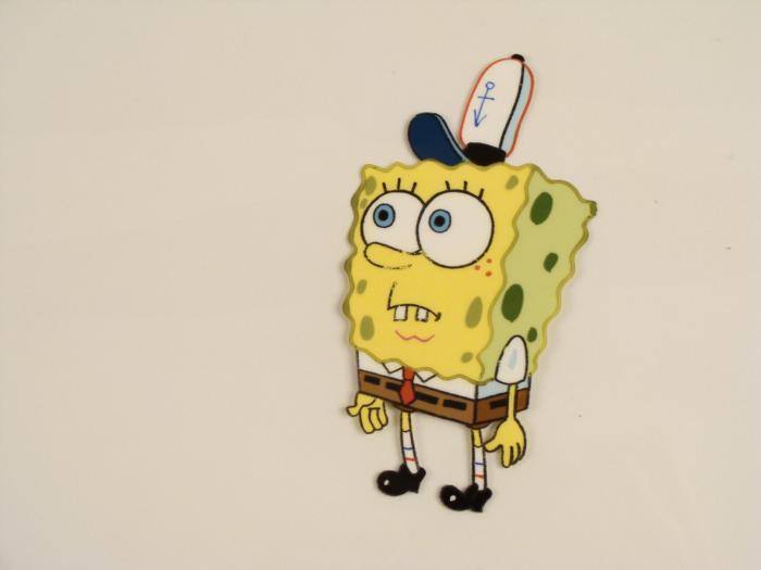 This original animation cel is from the Nickelodeon TV show SpongeBob Squarepants. The story takes place under the deep blue sea in Bikini Bottom, where SpongeBob resides. SpongeBob, who is a yellow, porous sponge, is your typical happy-go-lucky character, as he is always cheerful and enjoys making people laugh. Patrick Star, SpongeBob's neighbor who is a starfish, is your average children's show idiot, as he boasts knowing nothing and is often getting himself into ridiculous situations. Between the homes of these two lies the home of the miserable Squidward, a squid, who is known for being grouchy and playing tricks on SpongeBob and Patrick. Both SpongeBob and Squidward work at the Krusty Krab, a fast food business run by the greedy money-loving Mr. Krabs, a crab, the arch rival of the evil, possibly misunderstood, Plankton. Another neighbor, Sandy Cheeks, an athletic squirrel who normally wears an astronaut's space suit, was introduced in "Tea at the Treedome." She spends most of her time inventing and experimenting. SpongeBob has a blank face.Original Production Animated Cel Overall Size of Cel: 10 1/2" x 12 1/2" Very Good ConditionThis is an original hand-painted cel set-up used in the production of an episode of "SpongeBob SquarePants." Each one-of-a-kind set-up represents a slight change in position of the characters. When individually photographed and projected in rapid succession, the images appear to move.