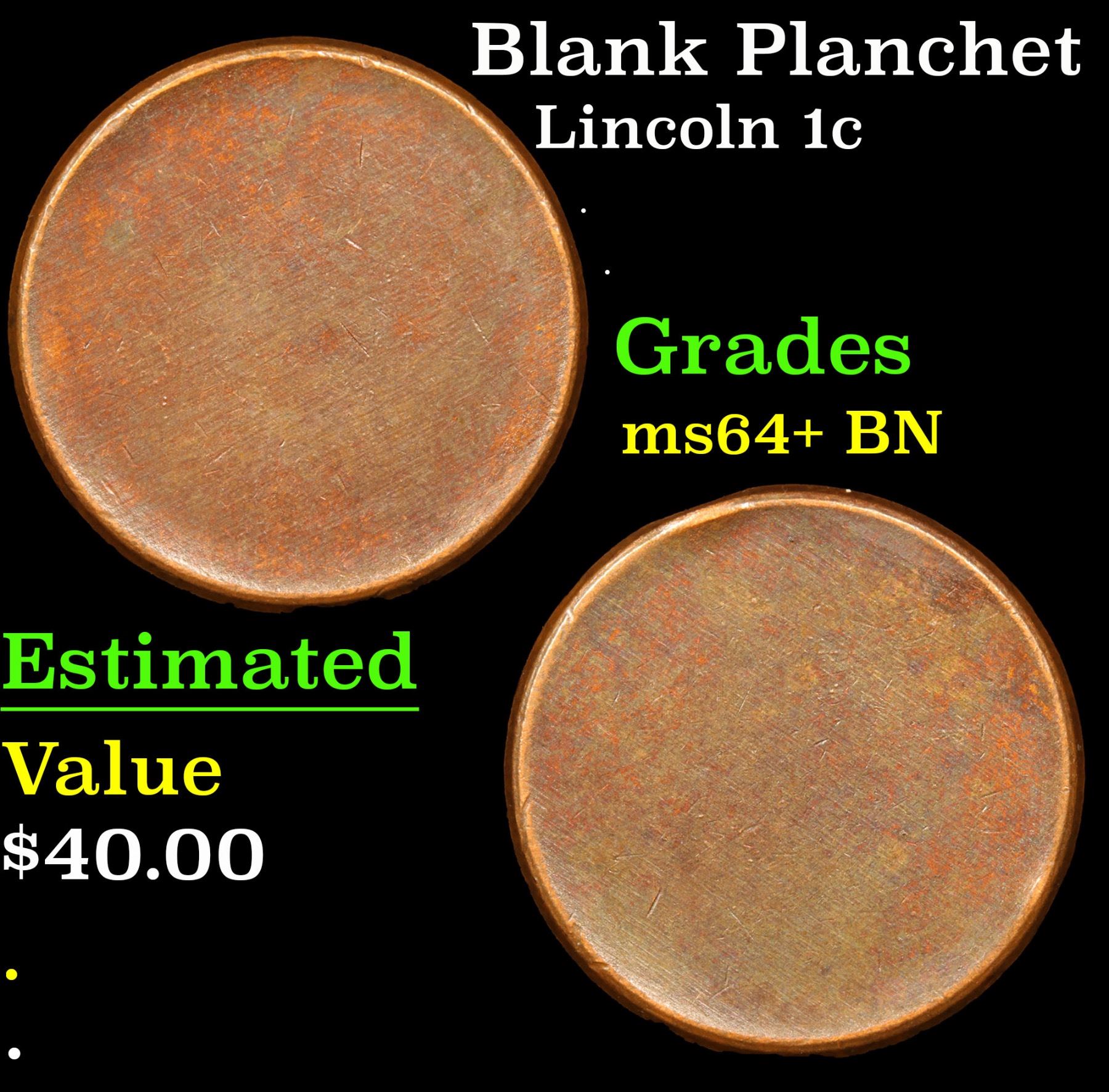 Blank Planchet Lincoln Cent 1c Grades Choice+ Unc BN.