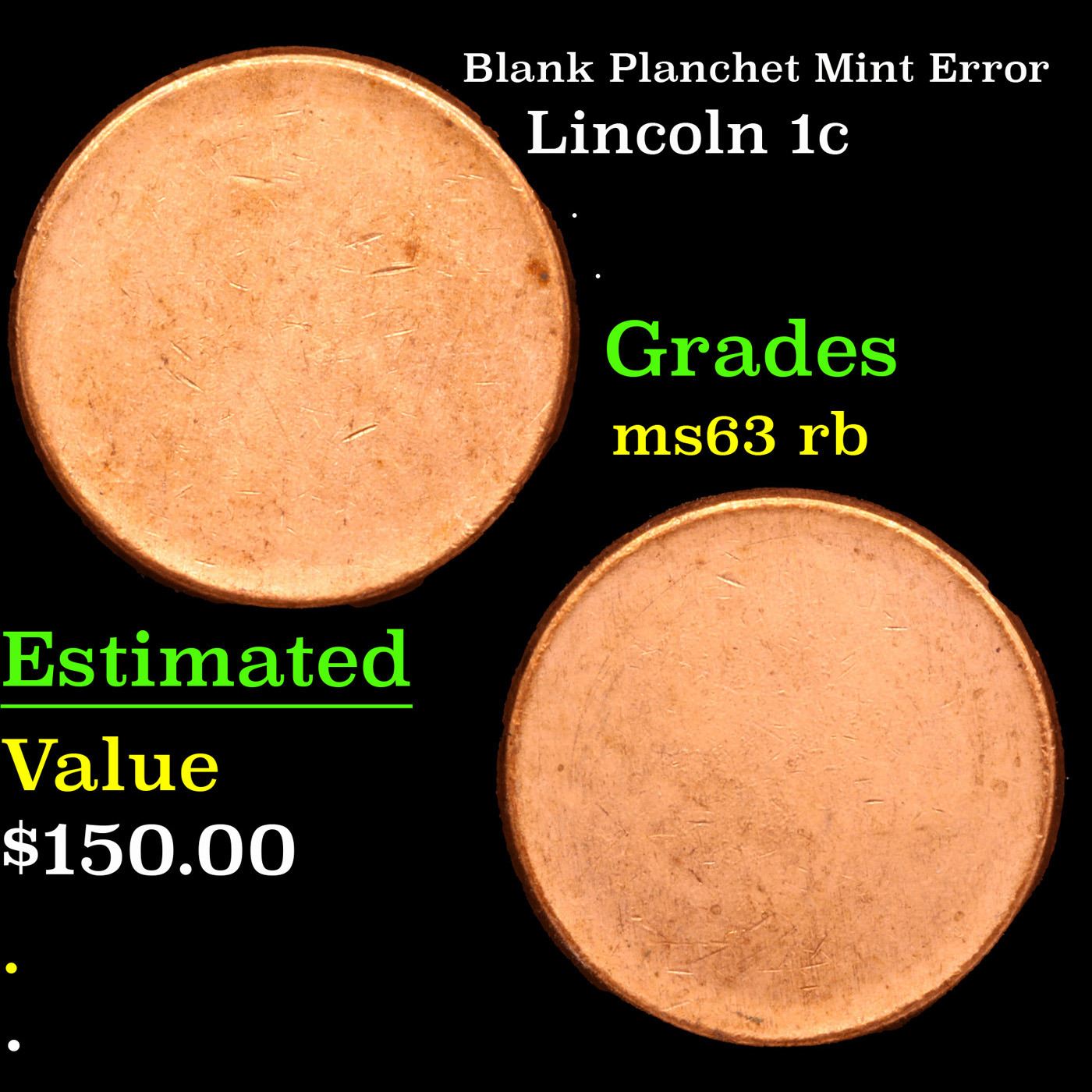 Blank Planchet Mint Error Lincoln Cent 1c Grades Select Unc RB.