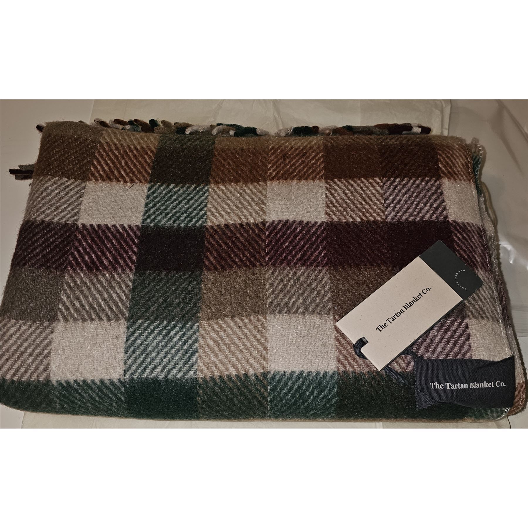 Recycled wool/cashmere throw with fringed edges, multi-color check pattern, by The Tartan Blanket Co., new.