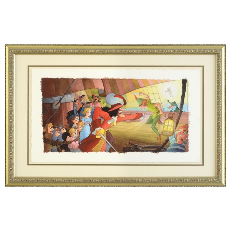 "Blast You Pan" is a limited edition giclee on deckle edge paper, numbered and hand signed by Toby Bluth (1940-2013). This piece is licensed by Disney Fine Art. This piece comes framed. Includes Certificate of Authenticity! Measures approx. 30.5" x 20" (with frame); 19.5" x 10" (image). ** Please note: there are very minor scratches to the acrylic protective cover and and minor wear to the frame at the corners and edges. **