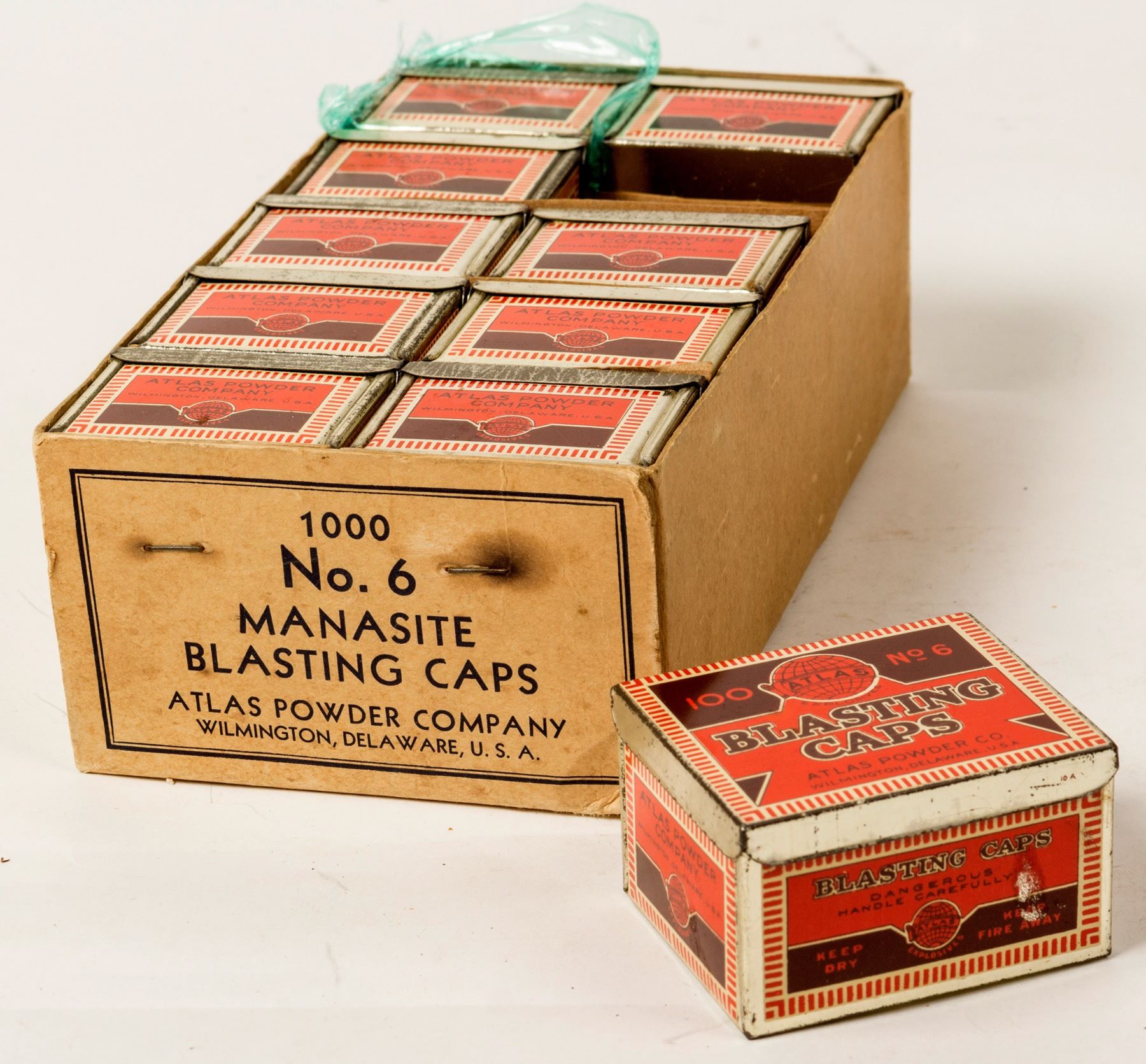 Original box of Atlas Powder Company tins. State: City: HWAC#: 46874 Date:
