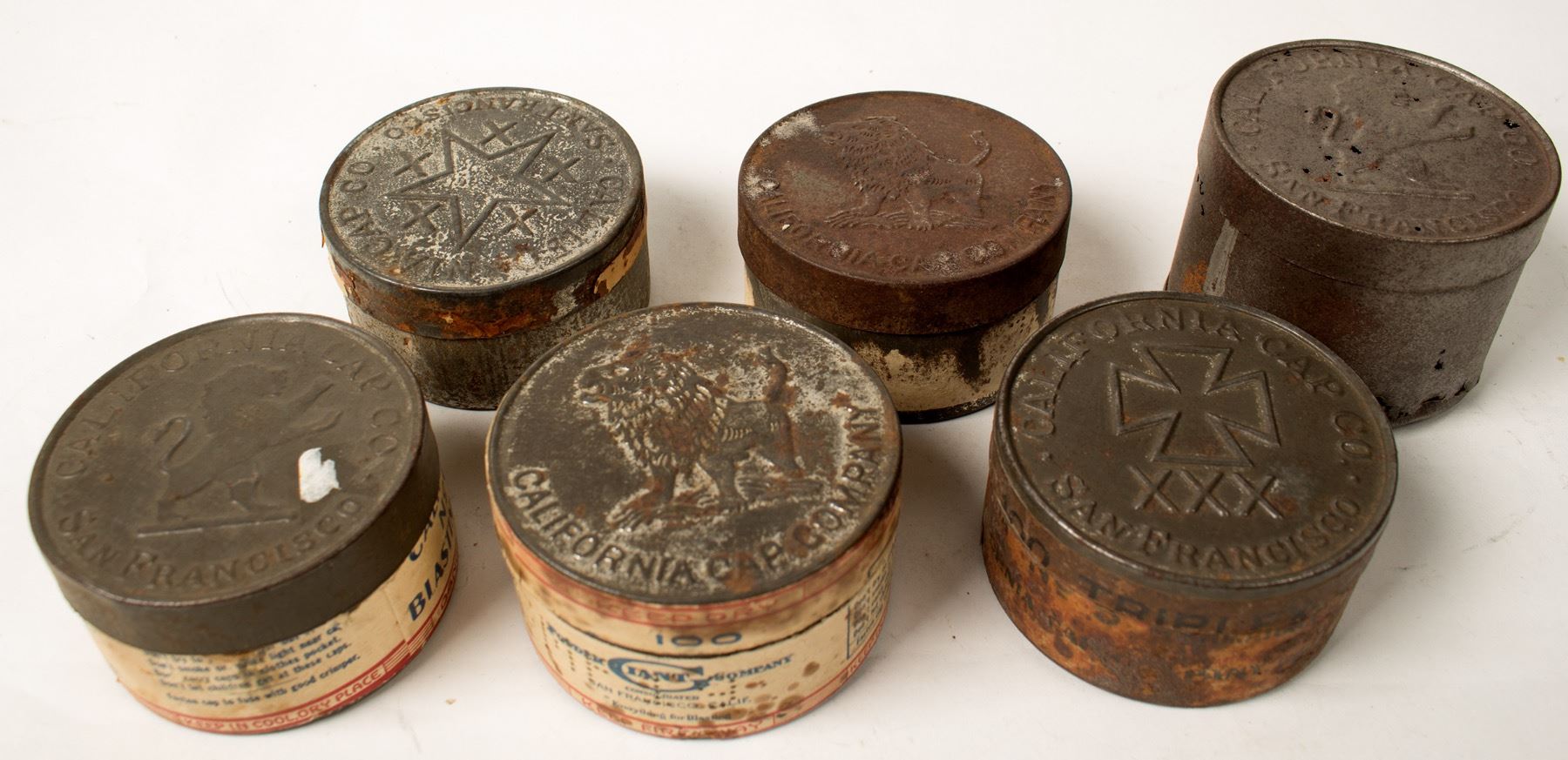California Company duplicate round tins. Six. Four are different. State: City: HWAC#: 46871 Date: