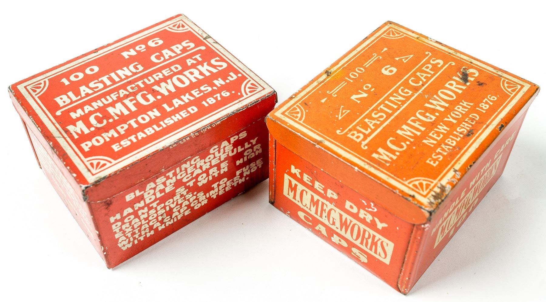 Two different rectangular blasting cap tins for the MC Manufacturing Works. Both no. 6 caps. State: City: HWAC#: 46857 Date: