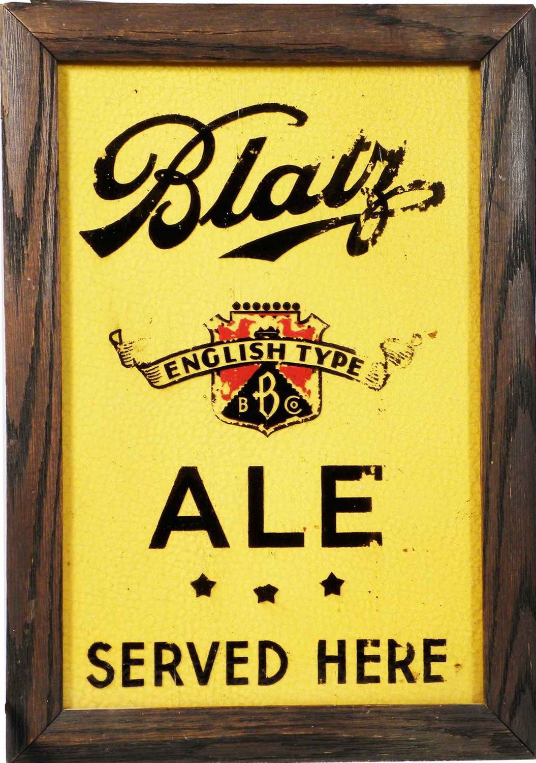 Blatz Ale Reverse Glass Light Up Sign. Oak frame, tin back. Some minor wear to the lettering otherwise good working condition. 9 3/4 X 13 3/4 X 4 1/2 inches.